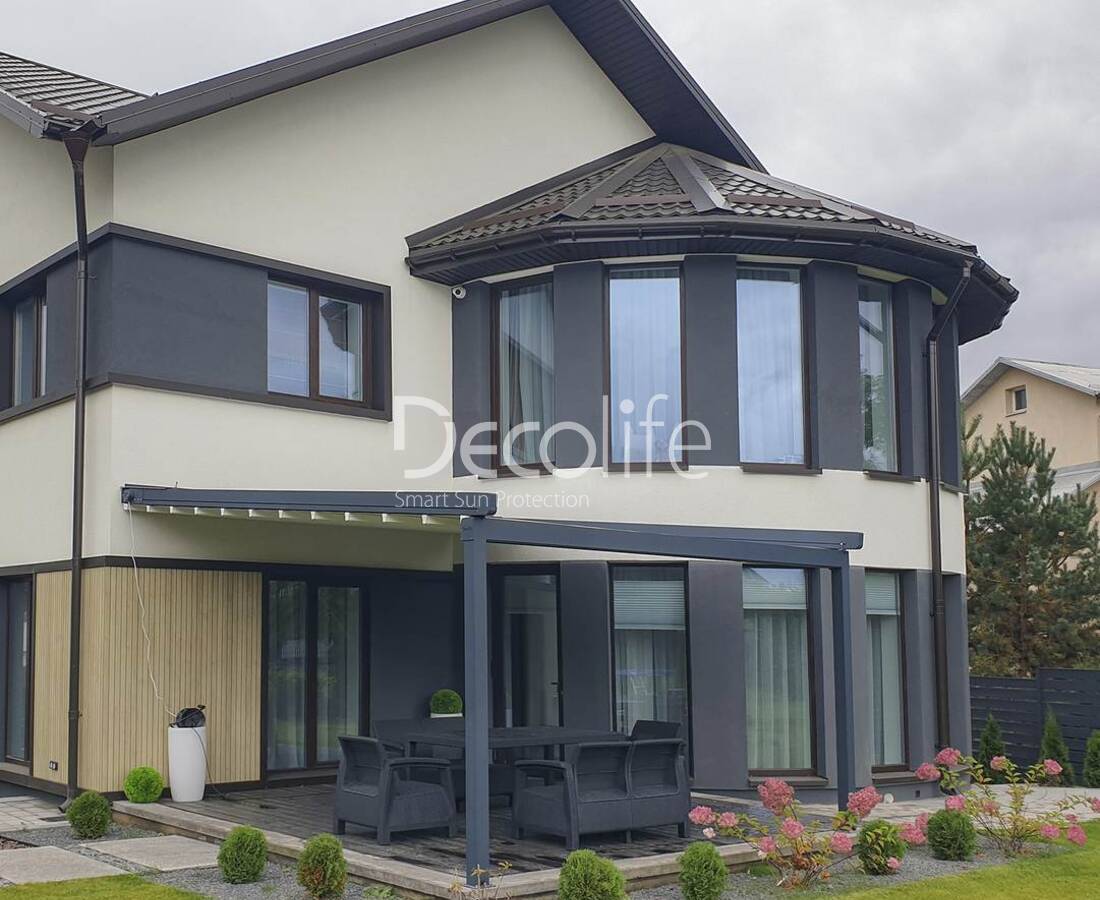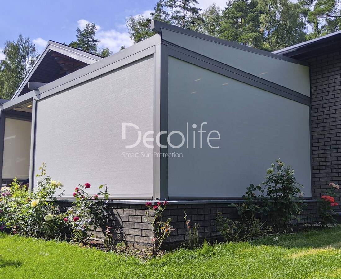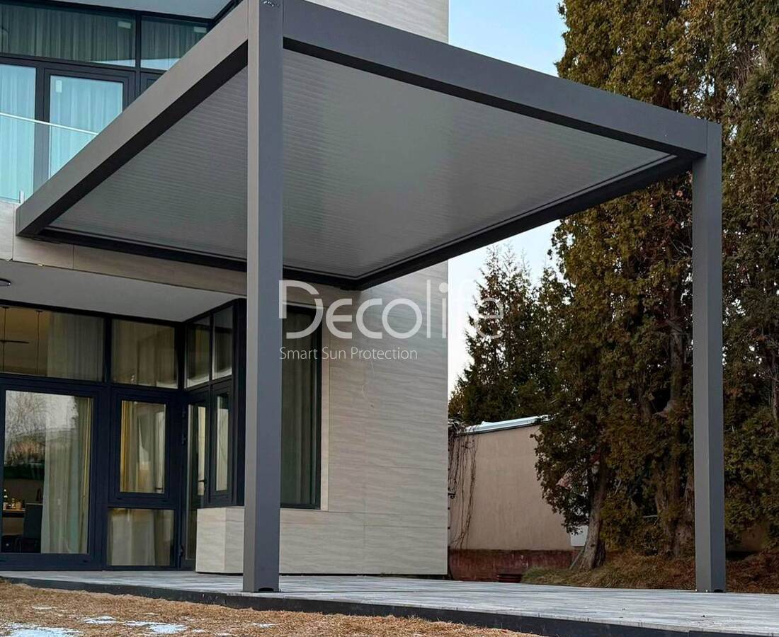 Пергола Decolife B600 PIR + Фасадные жалюзи FZ-44 + Гильотинное W500 и раздвижное S200 остекление - г. Минск
