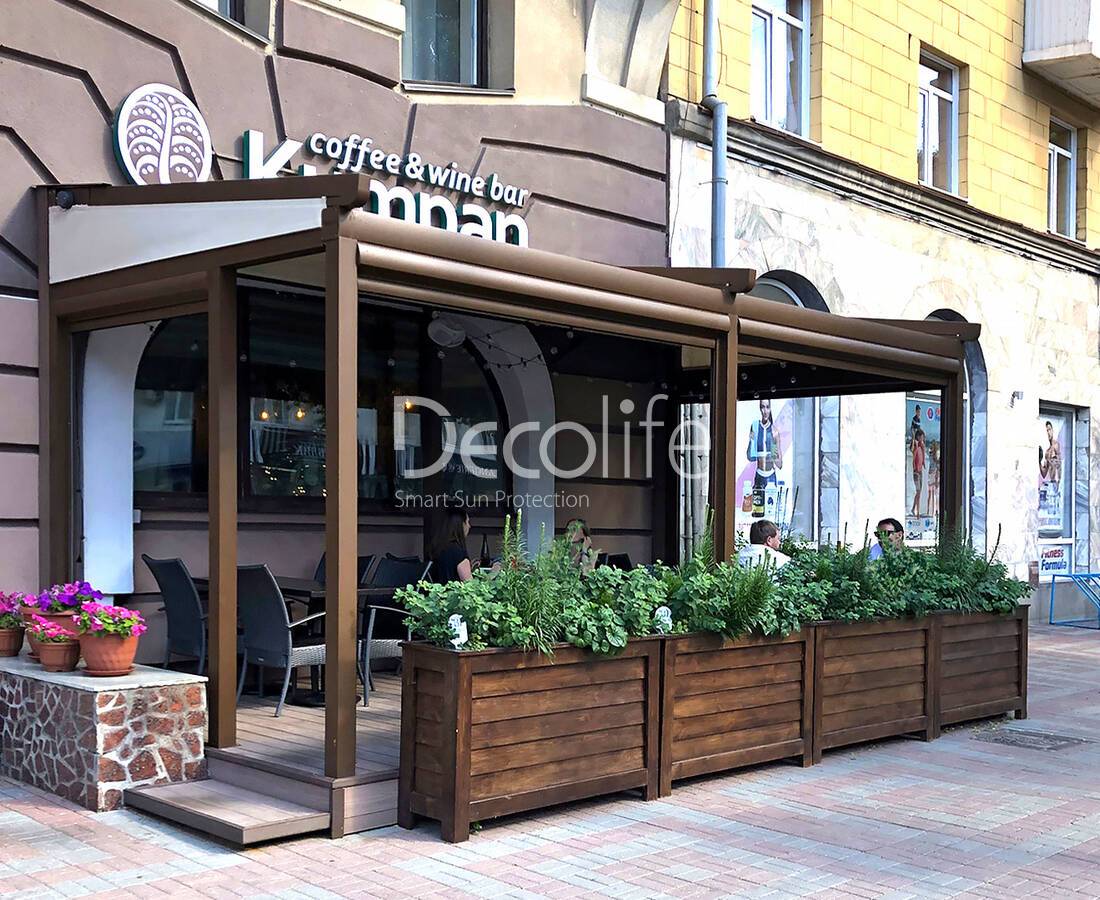 Пергола Decolife B700-25С + остекление FC58, S200 - Лаунж зона "Яндекс", БЦ "Феррум"