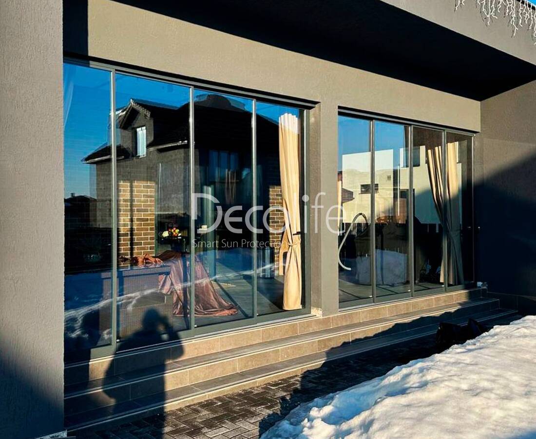 Системы отличаются повышенной надежностью, стойкостью к ветровым и другим нагрузкам. При установке рекомендуется высота в 3 м. Максимальное количество панелей – 12 штук, поэтому конструкции могут использоваться для остекления просторных пространств, в том числе всех пергол Decolife.