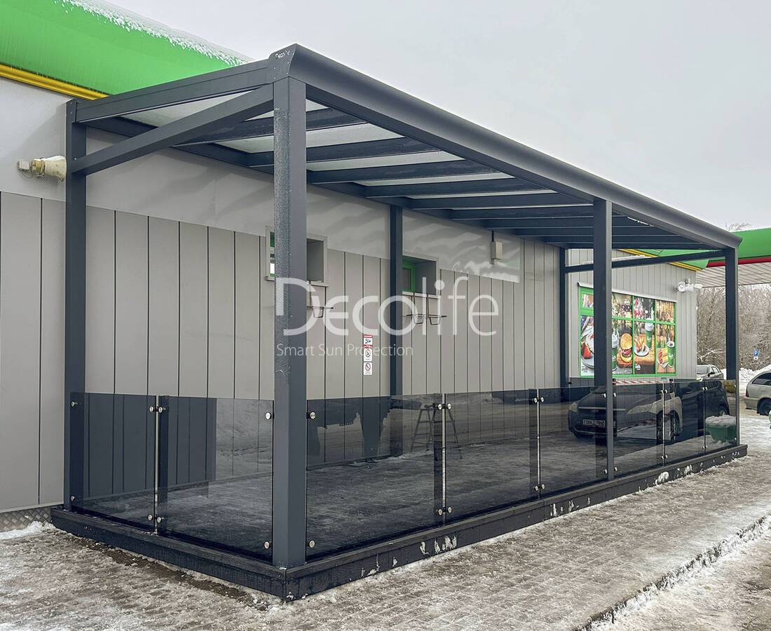 Пергола Decolife B500-25П + гильотинное остекление W300 + Тентовая пергола - г. Ялта